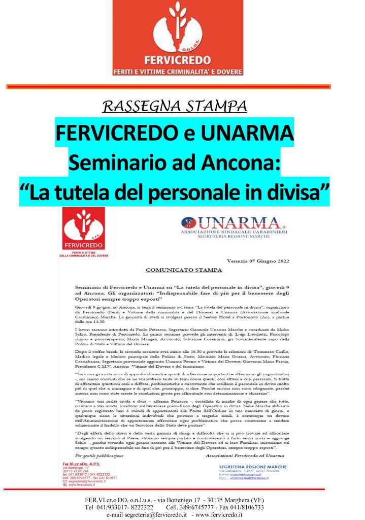 Rassegna Stampa FERVICREDO 7 giugno 2022 – FERVICREDO e UNARMA La tutela del personale in divisa – Seminario